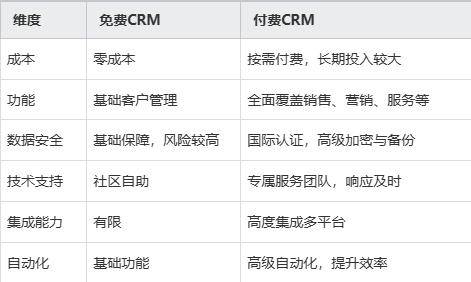 涉及敏感客户数据或有合规要求的企业,应优先考虑付费CRM,确保数据安全和合规性。