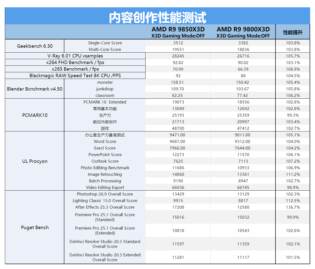 得益于Zen 5架构本身在IPC性能方面的显著飞跃,以及3D V - Cache技术的独特优势,AMD锐龙9 9950X3D已成功使X3D处理器跃升至生产力性能的巅峰。那么,此次锐龙7 9850X3D的表现究竟如何呢?