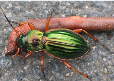 步甲虫,是鞘翅目(Coleoptera)步甲科(Carabidae)昆虫的通称。世界已知约2.5万种,中国约800种以上。成虫体长1~60 毫米,中等大小;色泽幽暗,多为黑色、褐色,常带金属光泽;少数色鲜艳,有黄色花斑;体表光洁或被疏毛,有不同形状的微细刻纹。